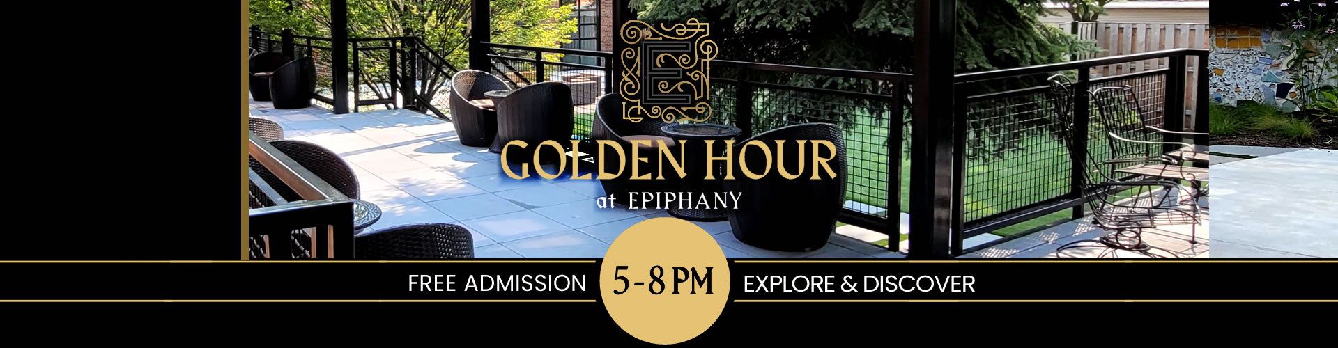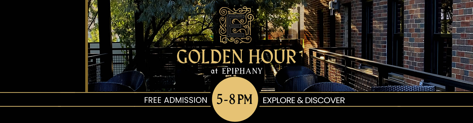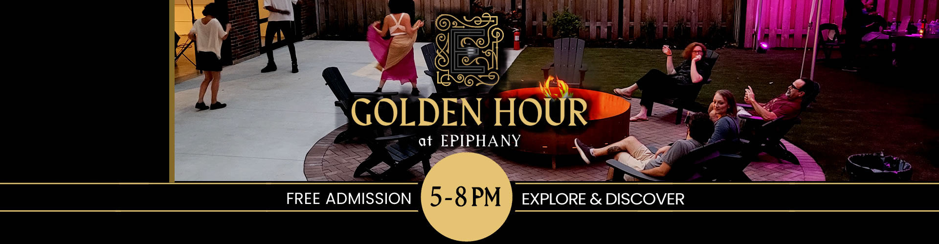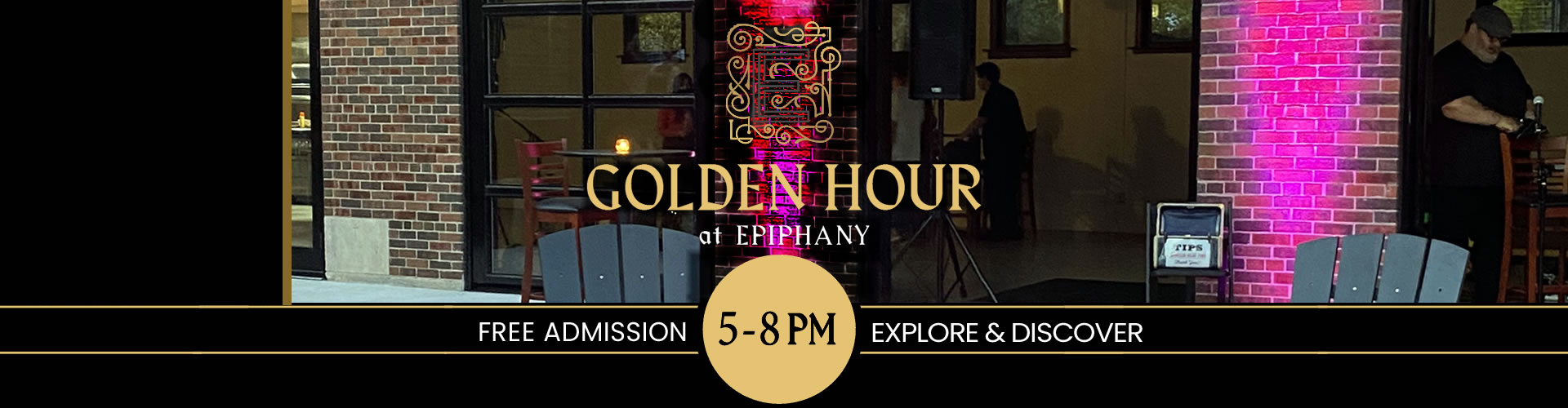 Enjoy food and drink specials and free live entertainment , at Chicago’s most unique venue. Golden Hour is the perfect place to kick off your night before catching a show Epiphany Hall or The Sanctuary , or while exploring one of our many art galleries .