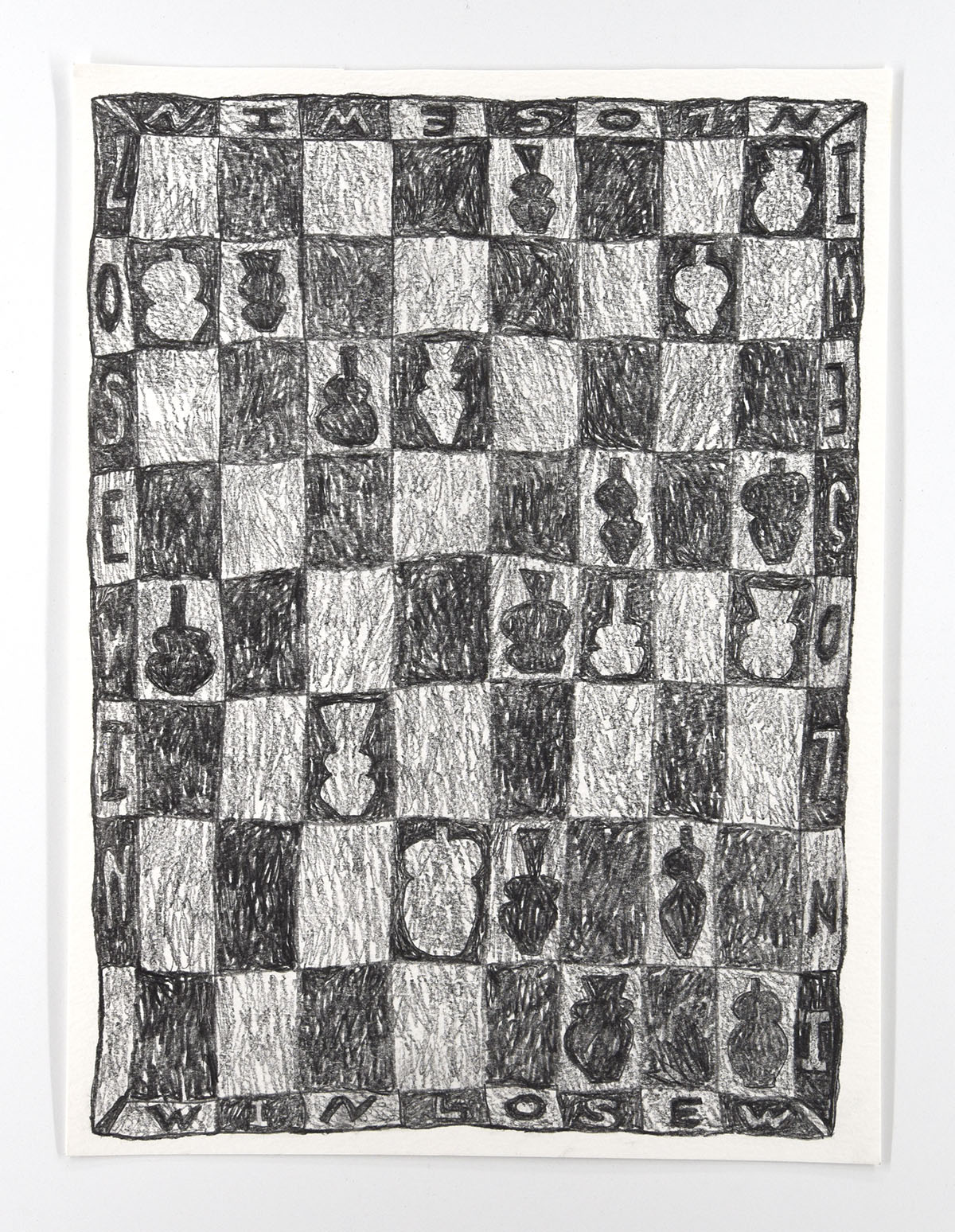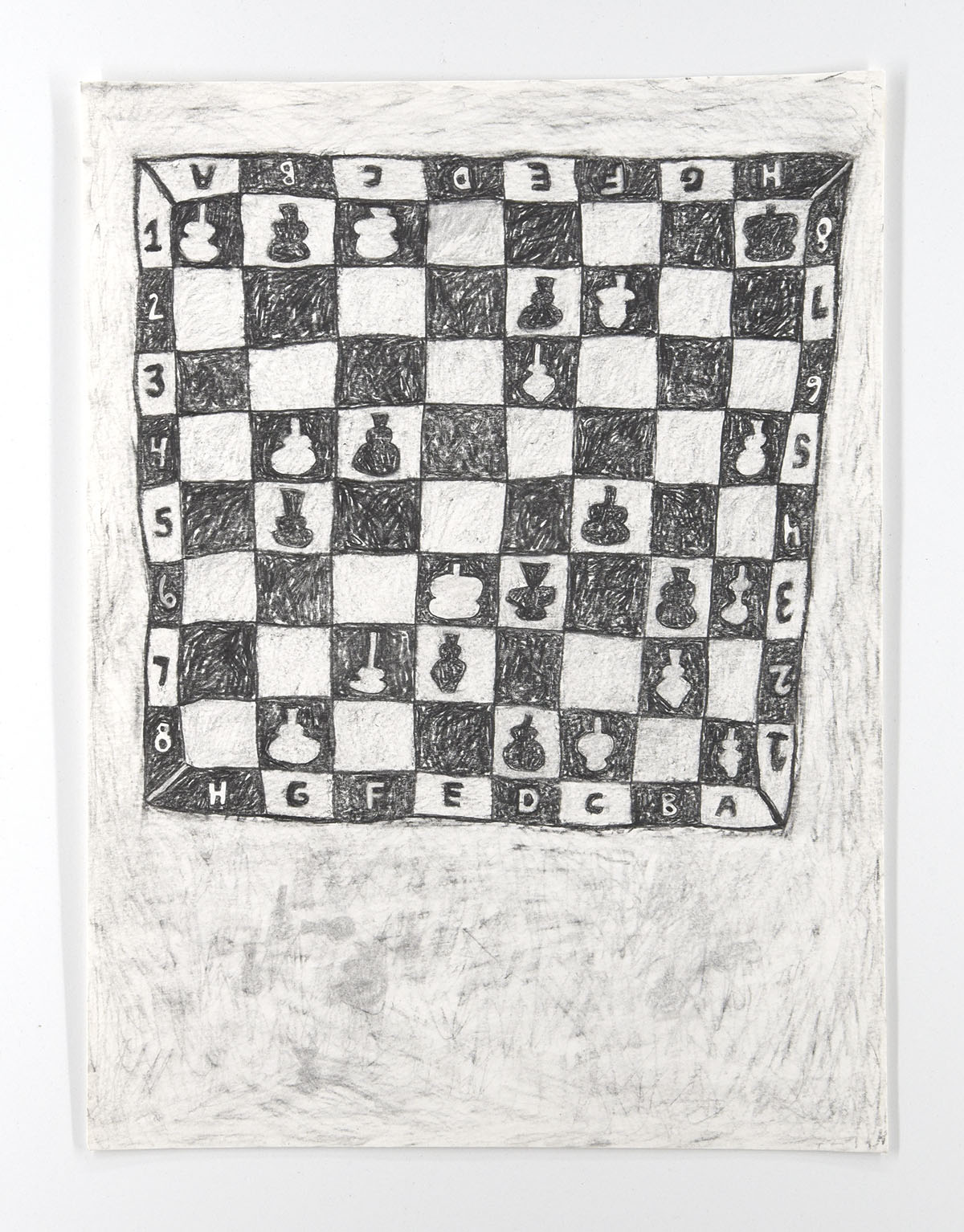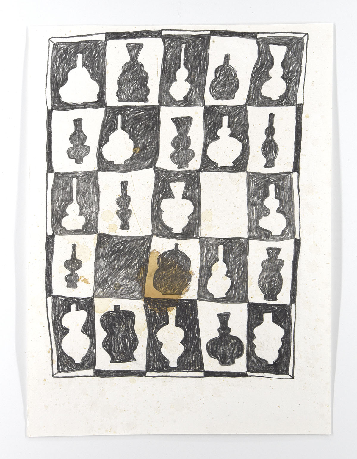 Graphite on paper, iron oxide stain