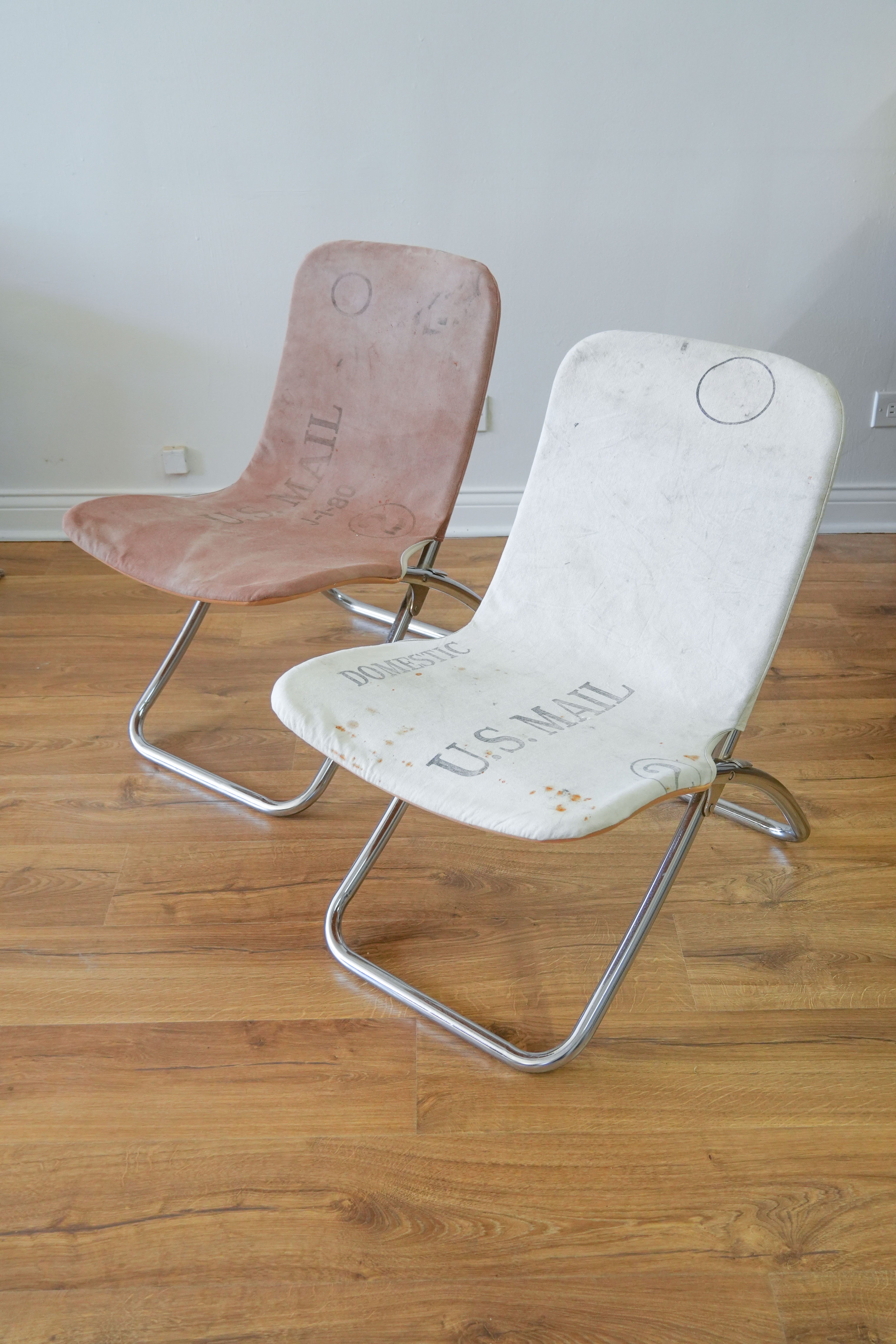 Mack Truck hood ornament, dice, salvaged desk, felt