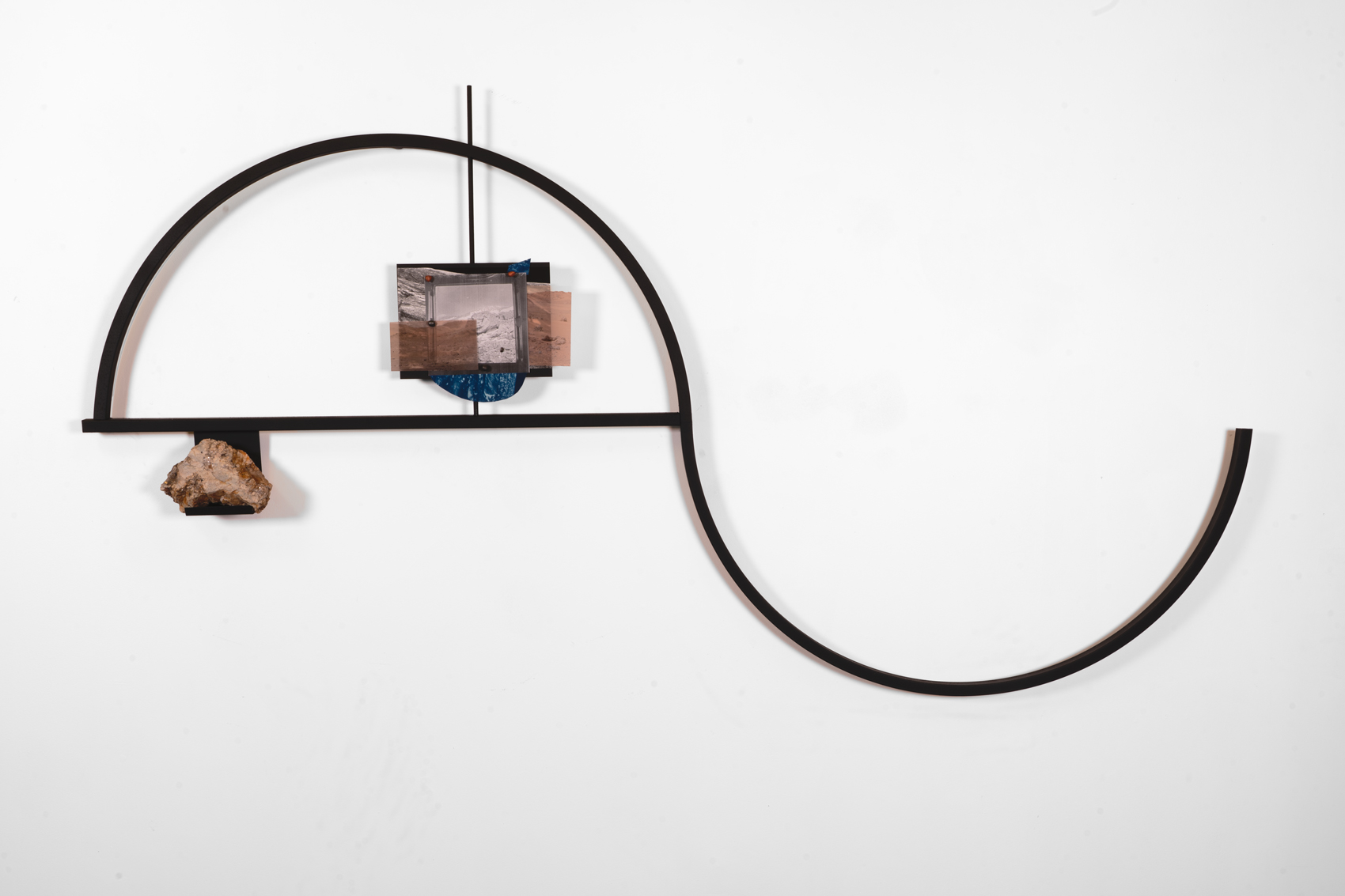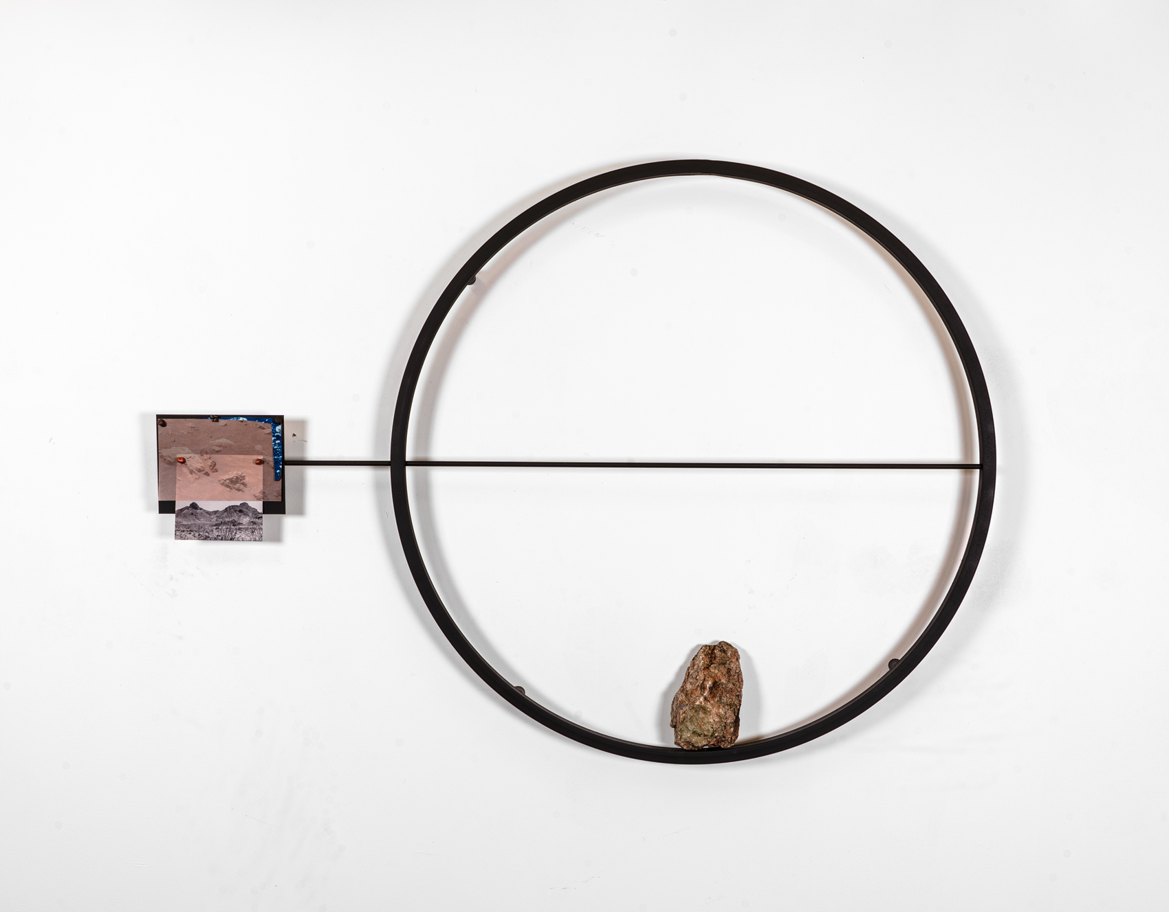 Steel, inkjet prints, cyanotype, epoxy clay, meteorite, desert rock